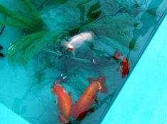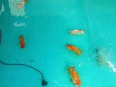 先週は雪が降ったりして、真冬に逆戻りし、震えあがってしまいましたが、らんちゅう池にはヒーターが入っており、10℃少々まで水温は下がったものの、魚には別段影響はありませんでした。