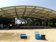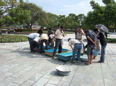 昨日は、広島ビッグアーチ 入口広場において、ワタクシの所属する広島錦鱗会のらんちゅう品評会が開催されました。