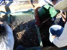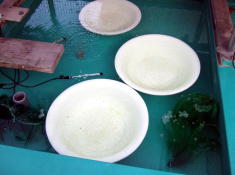 ●産卵巣、隔離用ザル、卵の日除け材