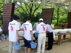 今日は打って変ってポカポカの春日和で、昨日と今日とで2回目の水替えをし、塗装が済んでない大池3池の上塗りを済ませました。 |